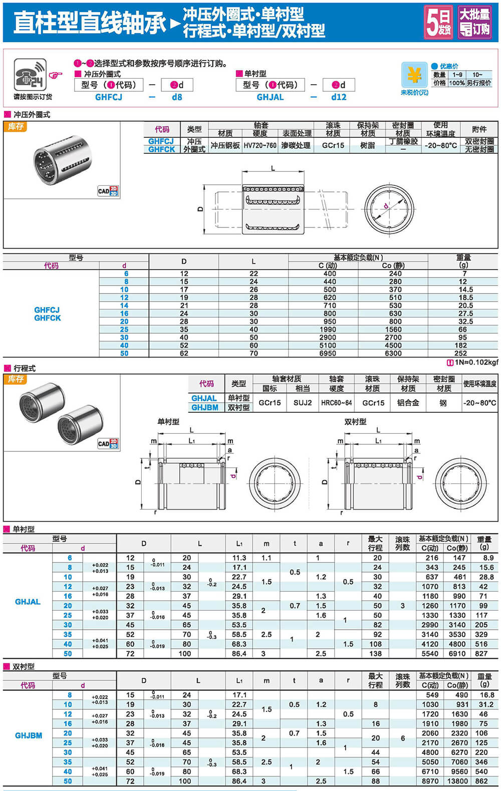 是一種低成本的直線運動系統(tǒng),用于無限行程與圓柱軸配合使用。由于承載球與軸為點接觸,故使用載荷小。鋼球以極小的摩擦阻力旋轉,從而能獲得高精度的平穩(wěn)運動。